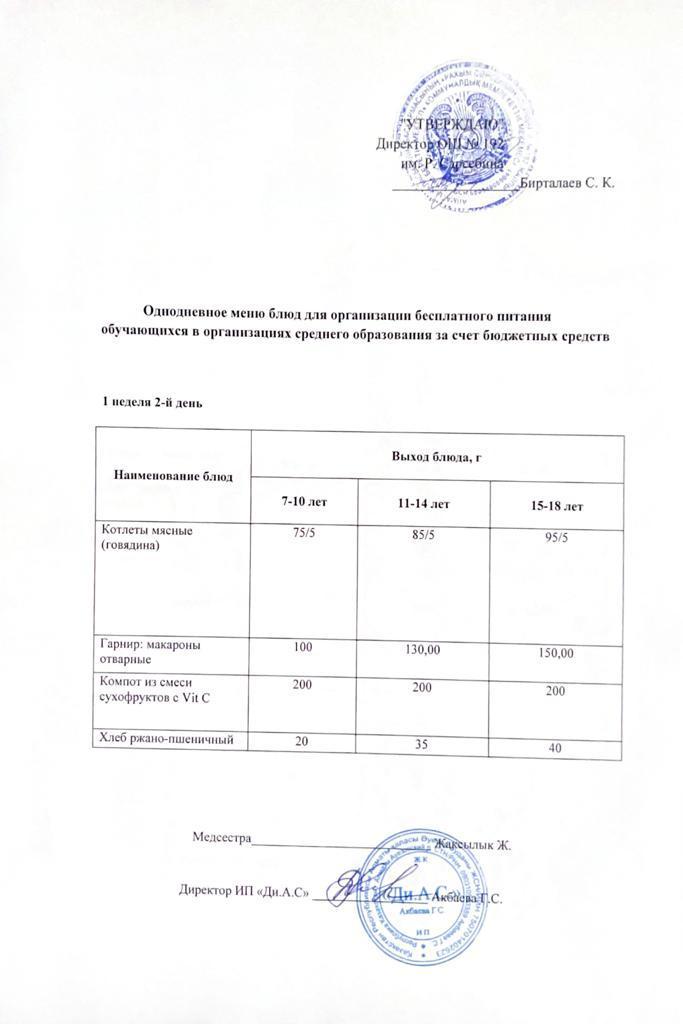 Тамақтануды ұйымдастыру бойынша жұмыс жоспары