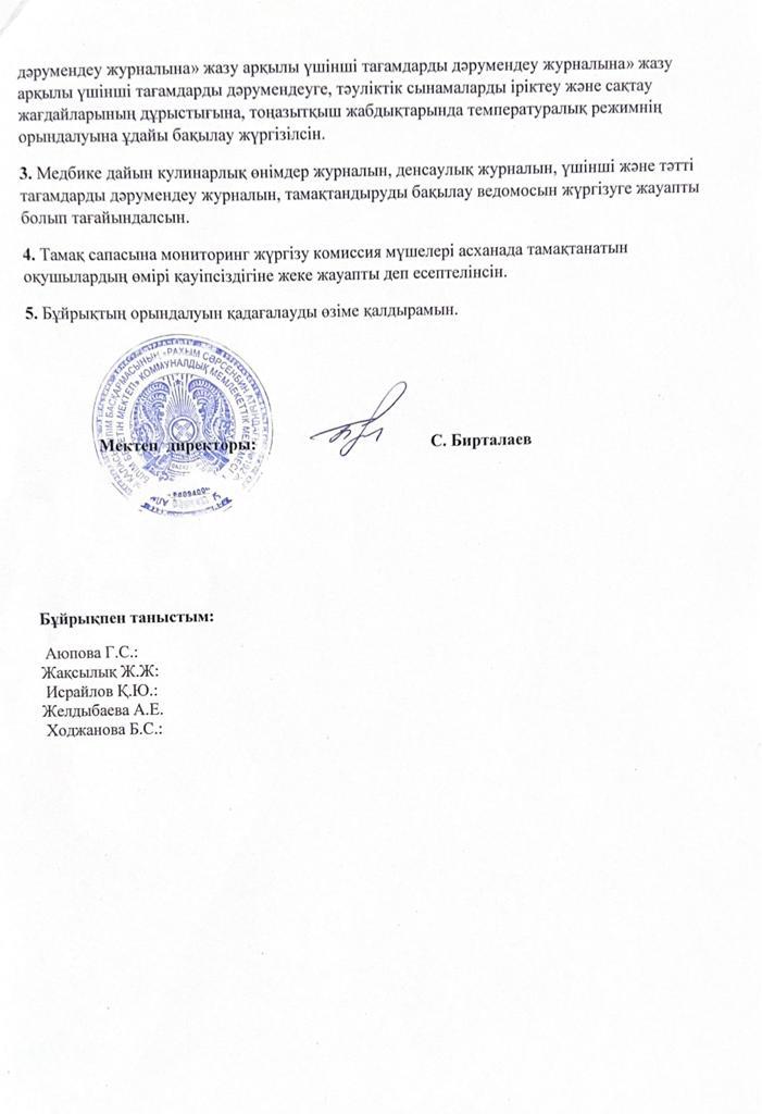 Тамақтануды ұйымдастыру бойынша жұмыс жоспары