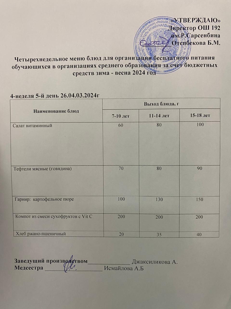 26.04.2024 Күнделікті меню