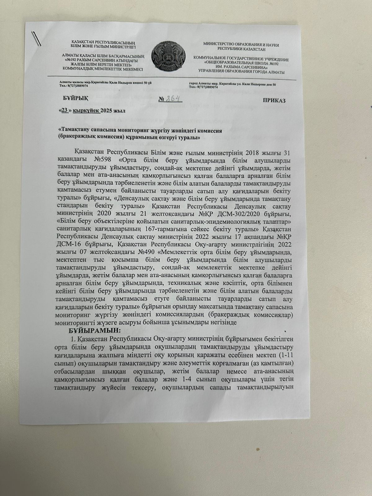 Бұйрық №864