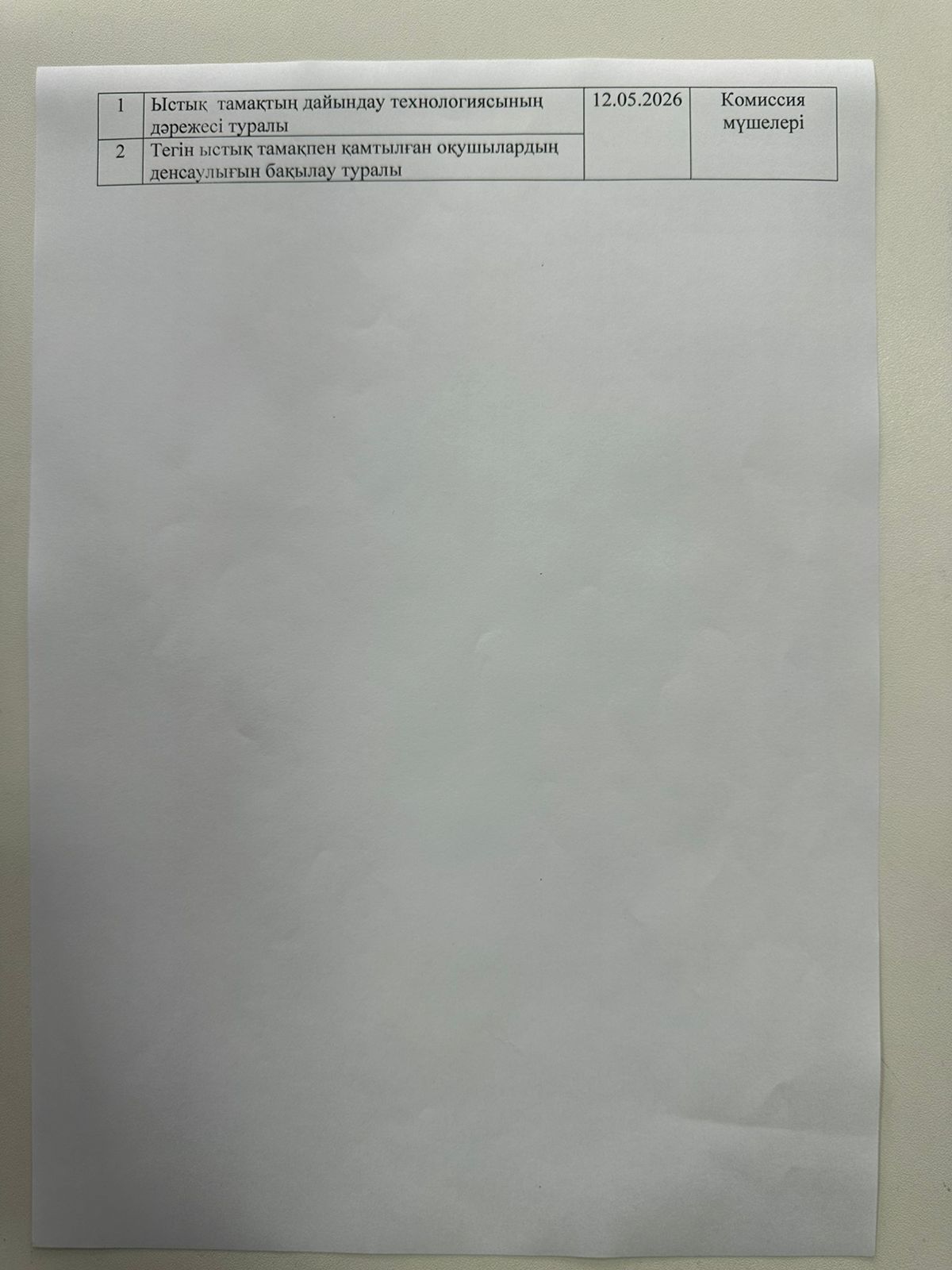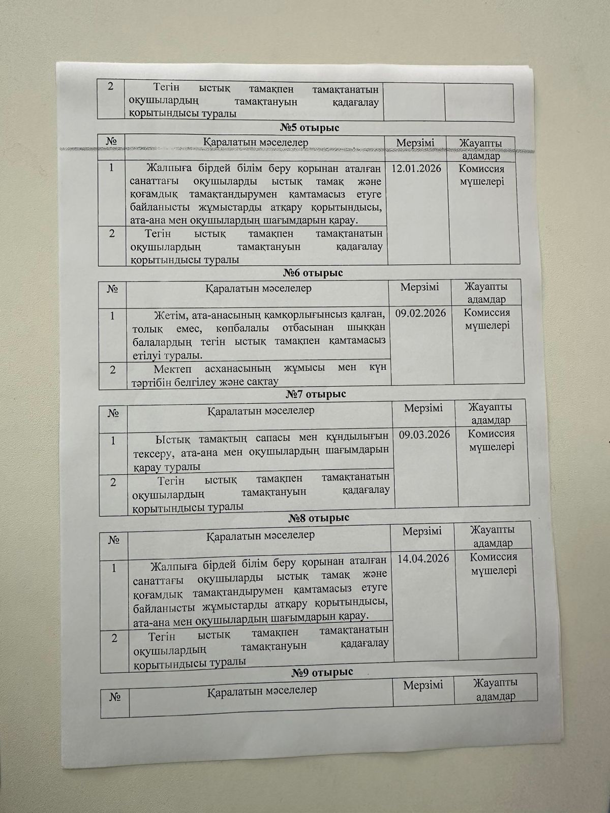 Комиссия мүшелері отырысының жұмыс жоспары