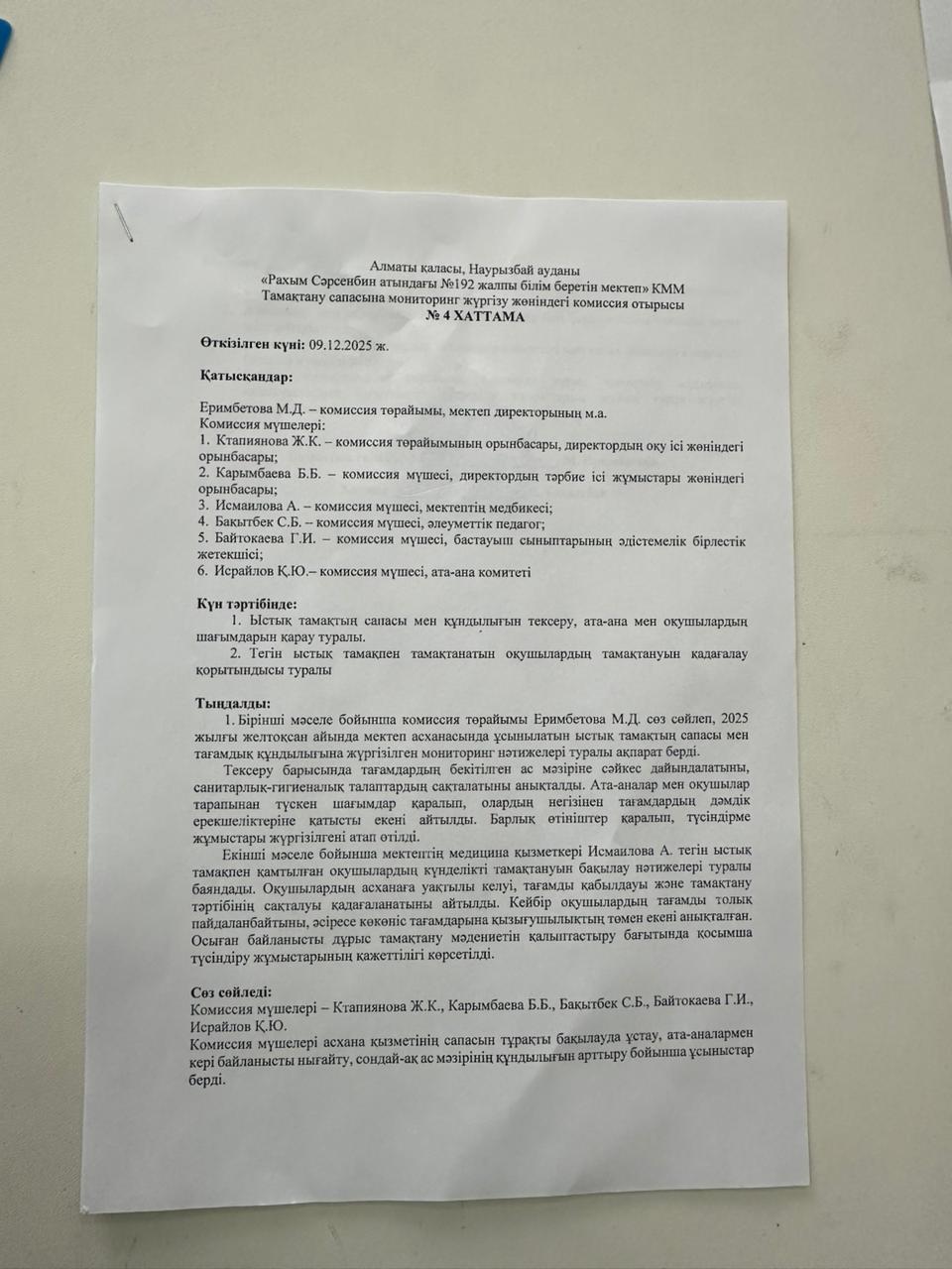 Комиссия отырысының хаттамасы №4