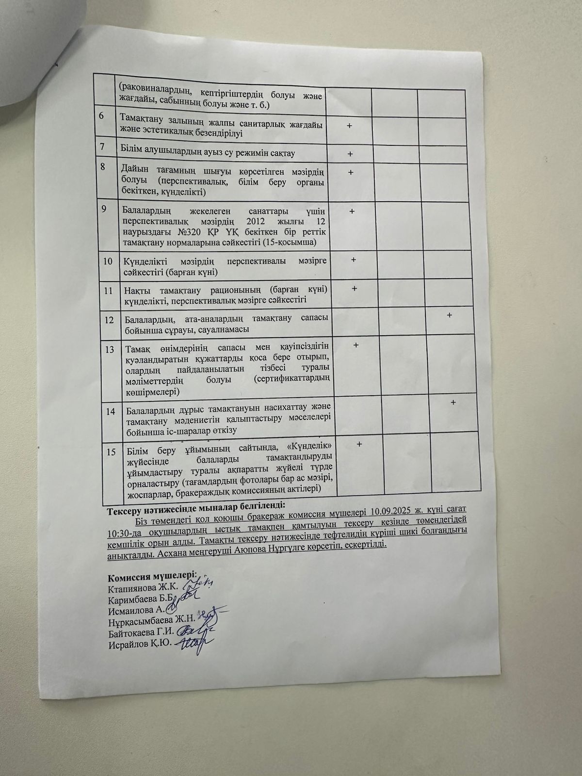 Бракераж комиссия жұмыс жоспары 2025-2026