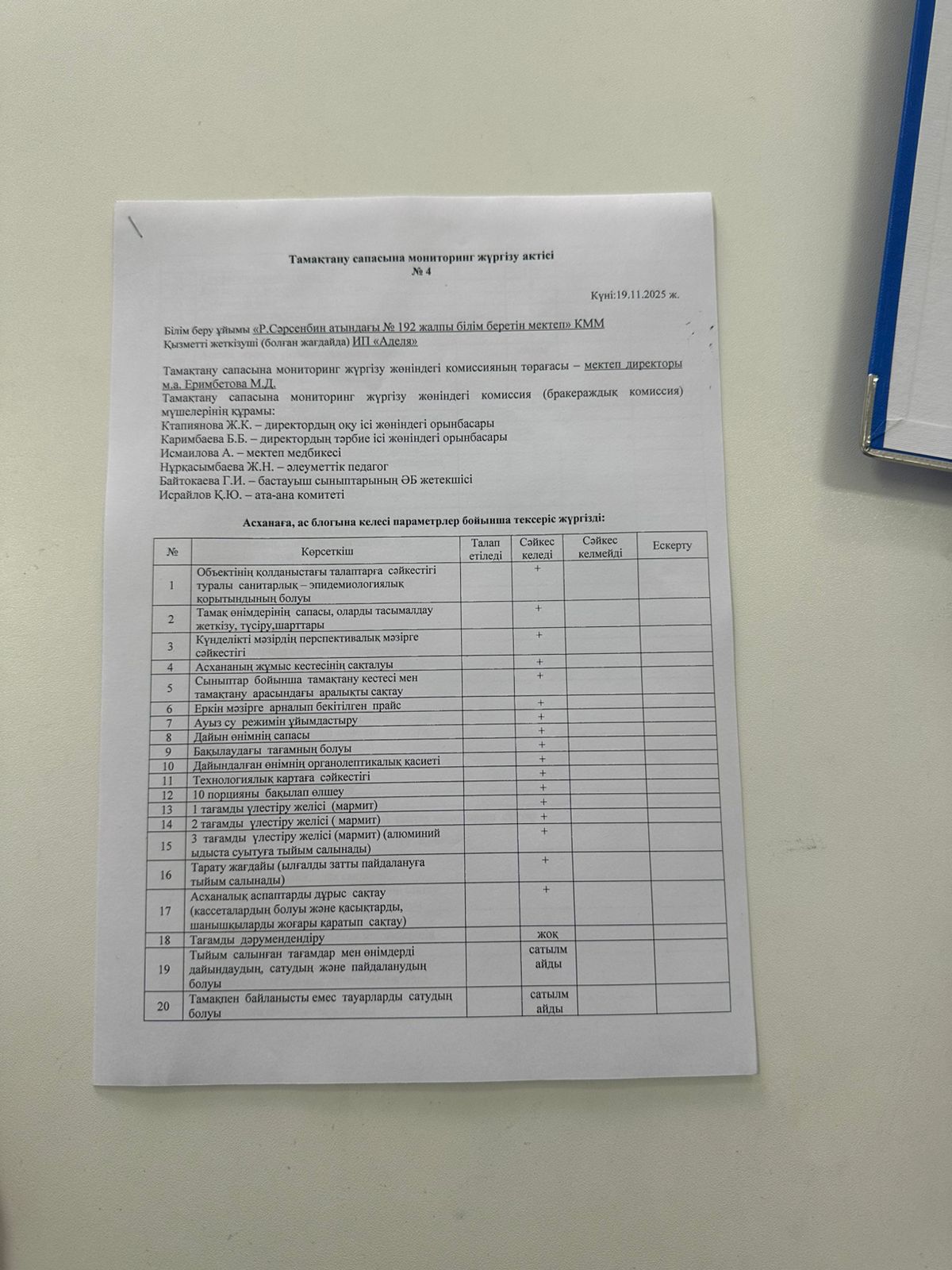 Бракераж комиссия жұмыс жоспары 2025-2026