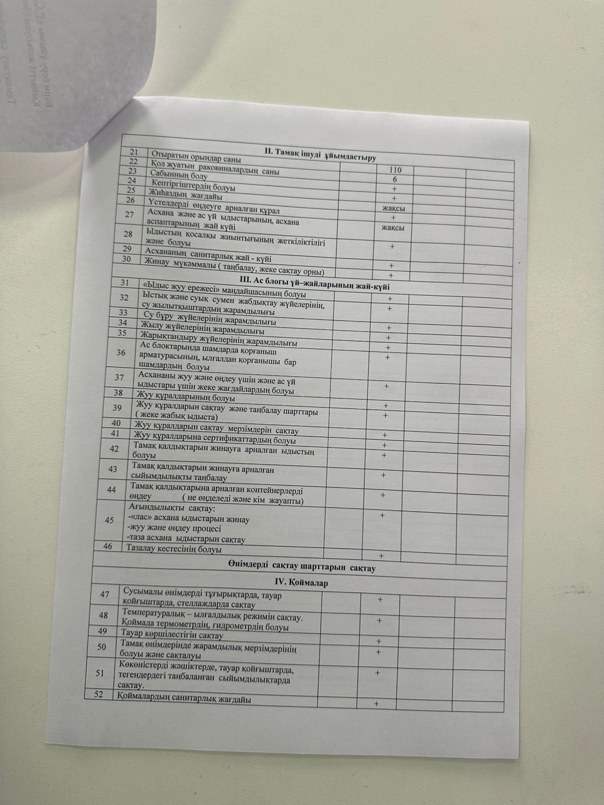 Тамақтануды ұйымдастыру бойынша жұмыс жоспары
