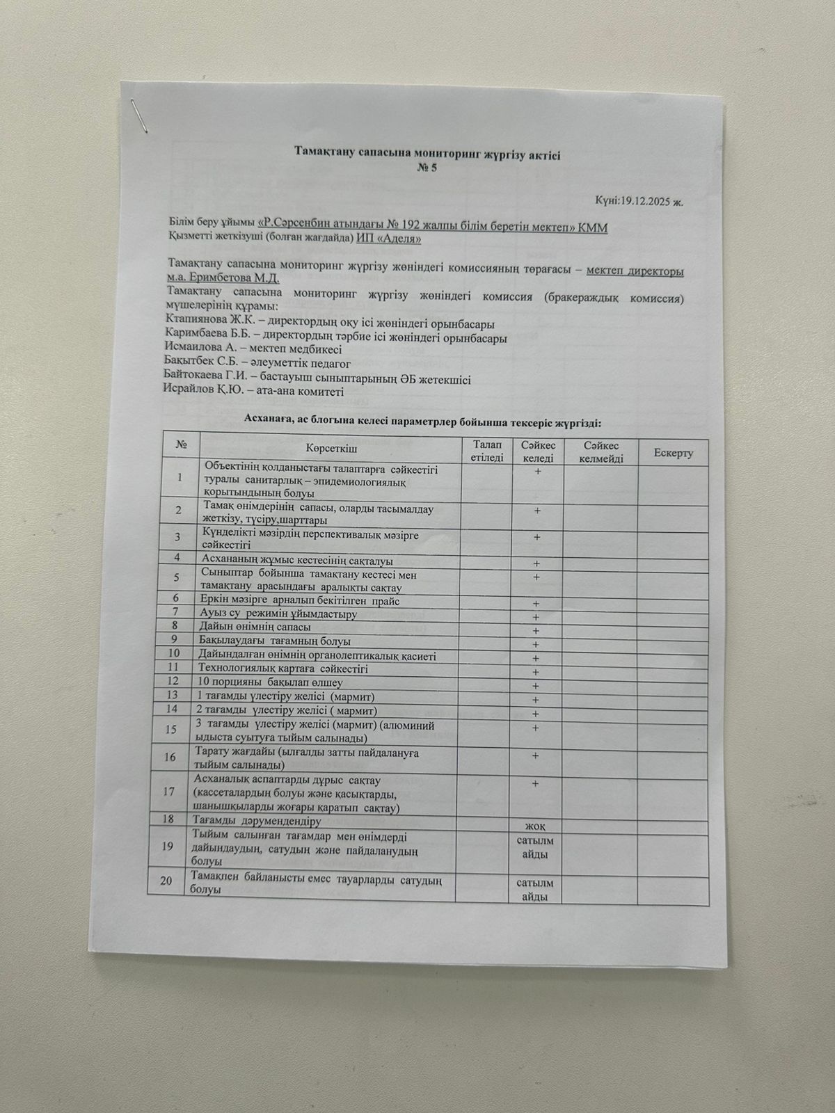 Комиссия отырысының хаттамасы №5