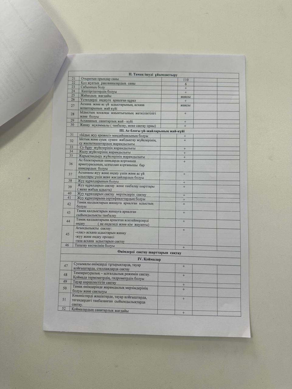 Тамақтануды ұйымдастыру бойынша жұмыс жоспары