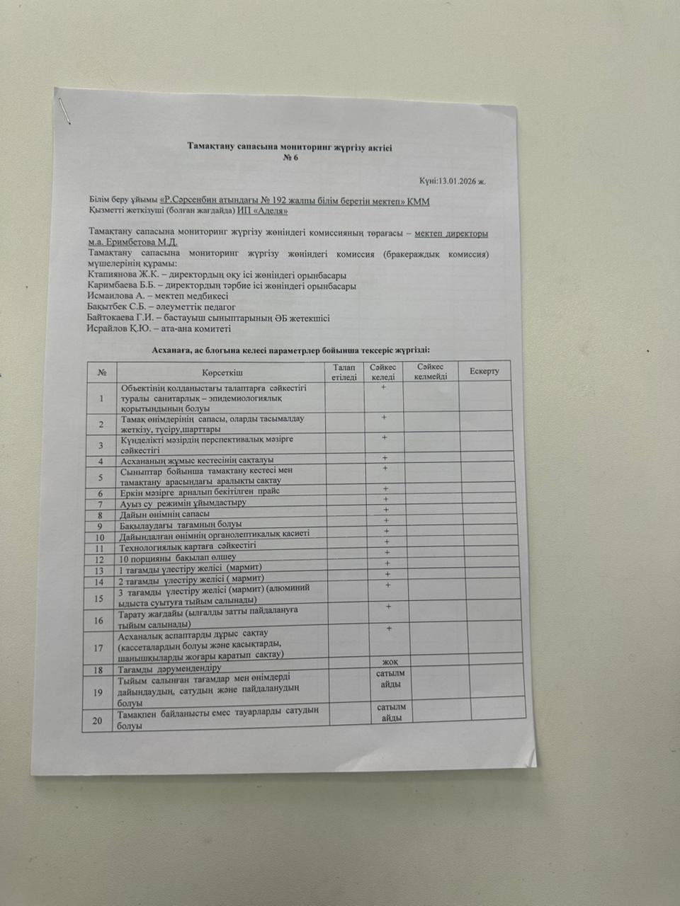 Бракераж комиссия жұмыс жоспары 2025-2026