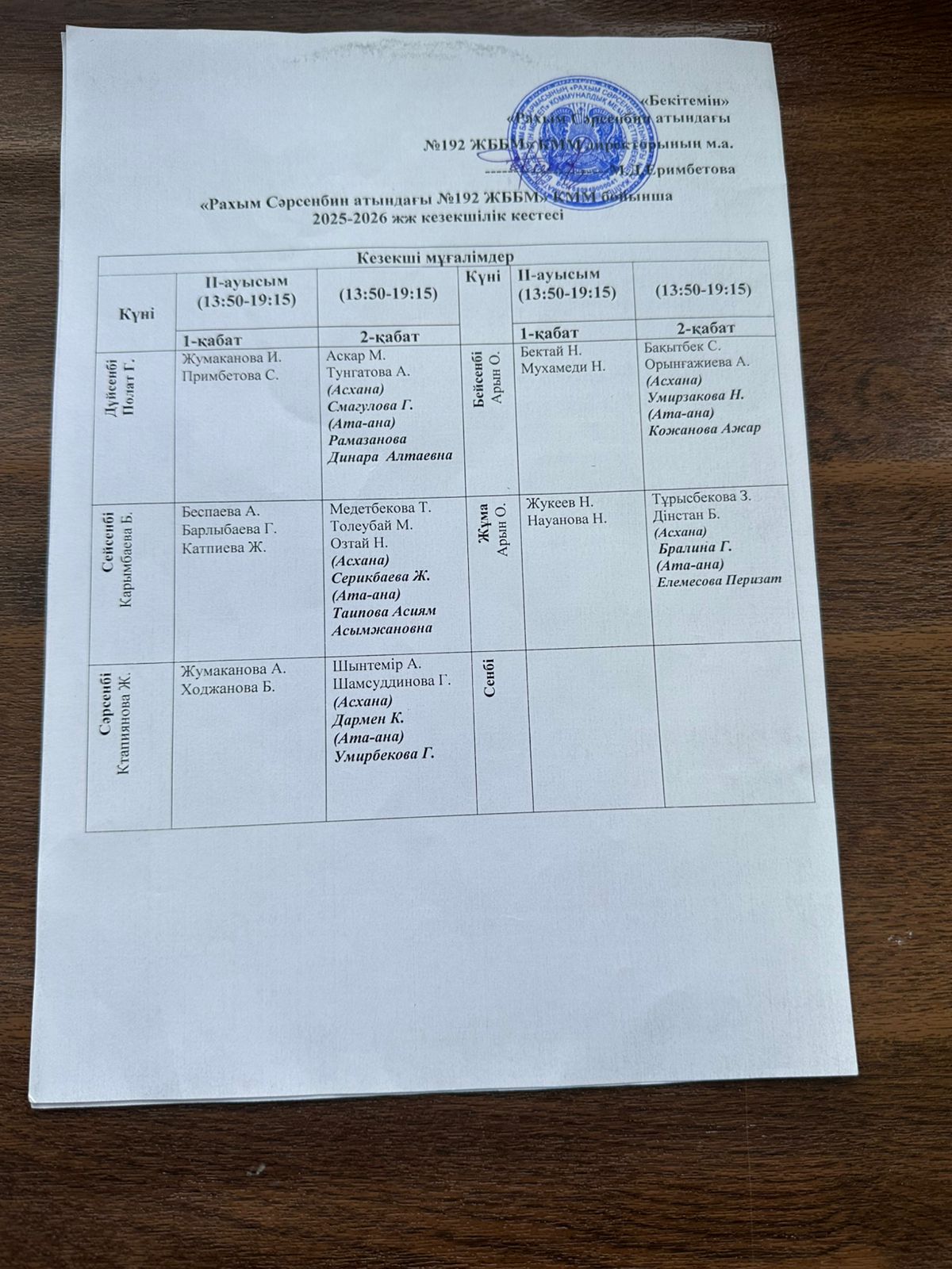 2022-2023 жылында асханада атқарылатын кезекшілік кестесі