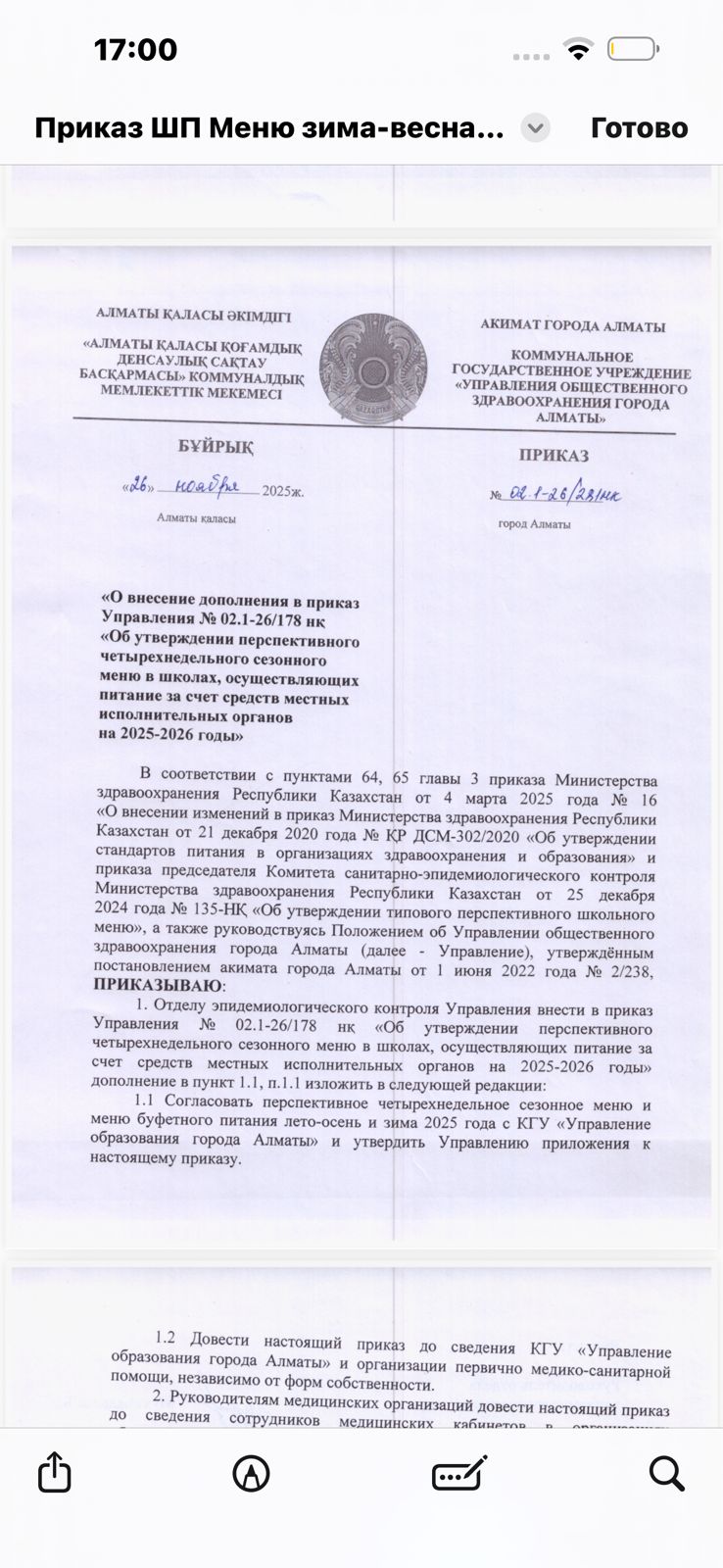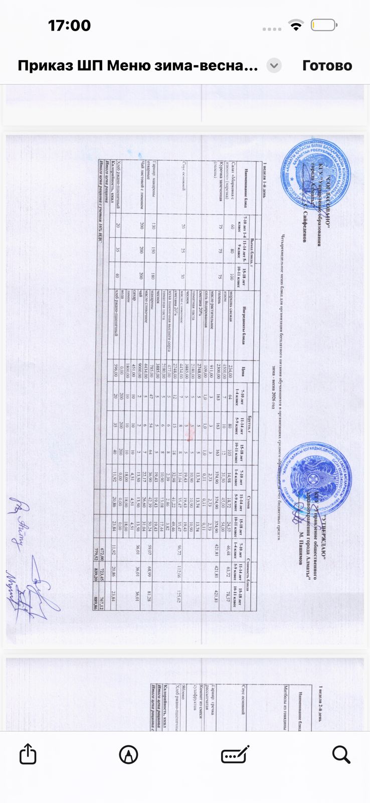 Тамақтануды ұйымдастыру бойынша жұмыс жоспары