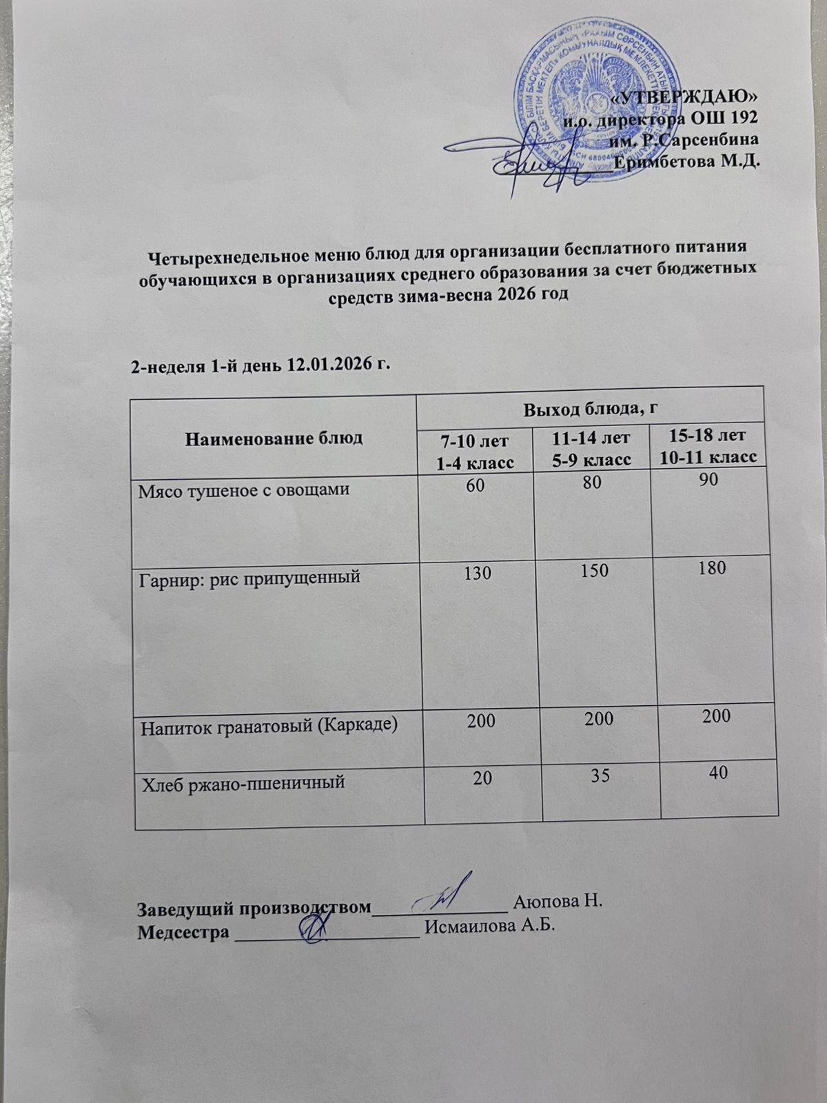 күнделікті ас мәзірі 12.01.2026