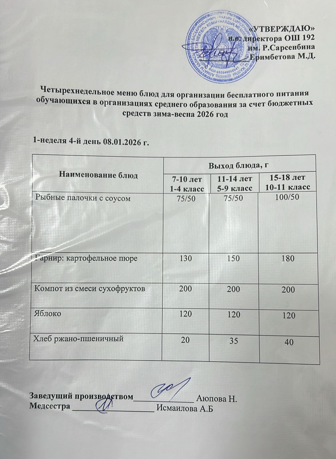 Күнделікті ас мәзірі 08.01.2026
