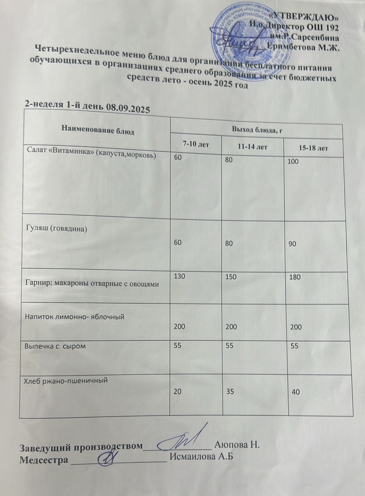 күнделікті ас мәзірі 08.09.2025