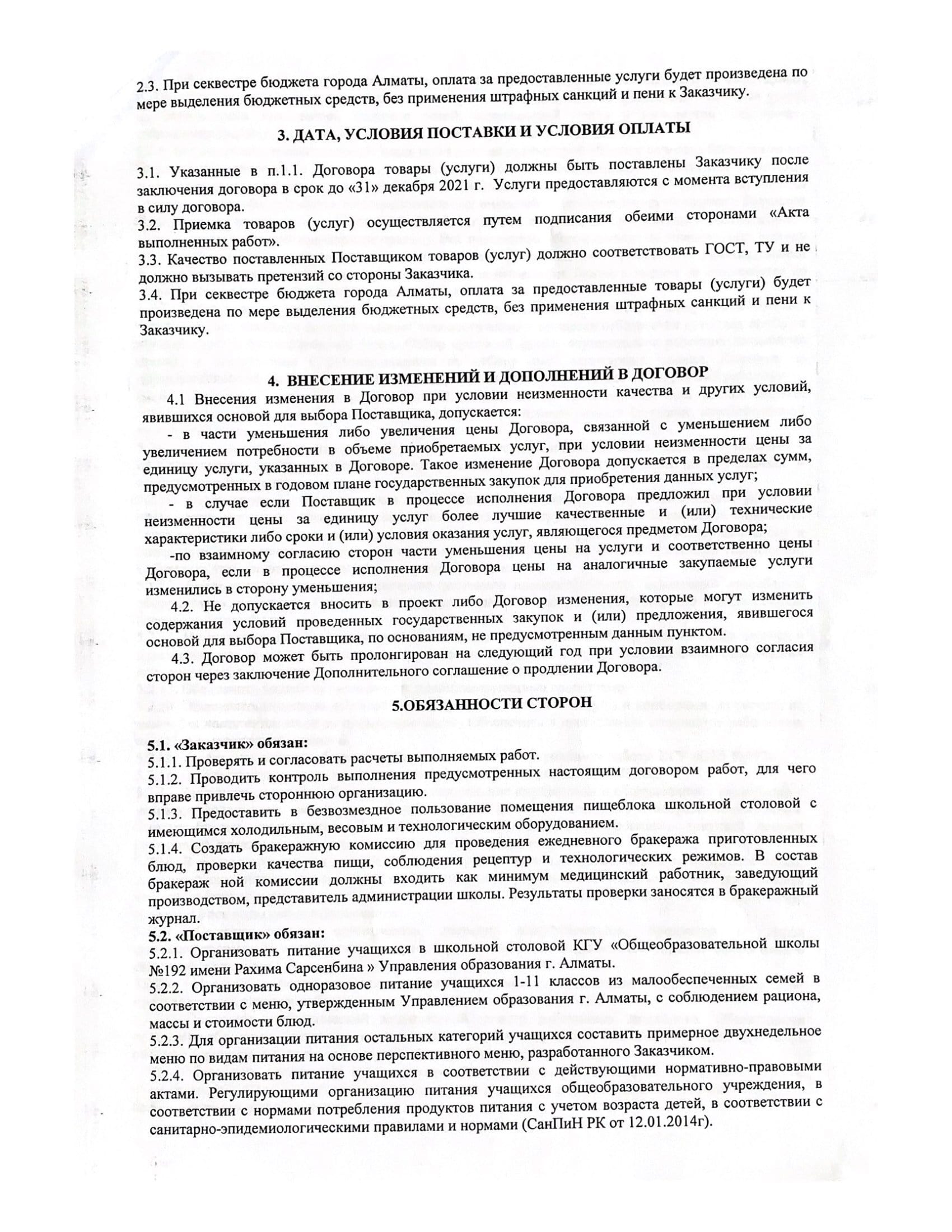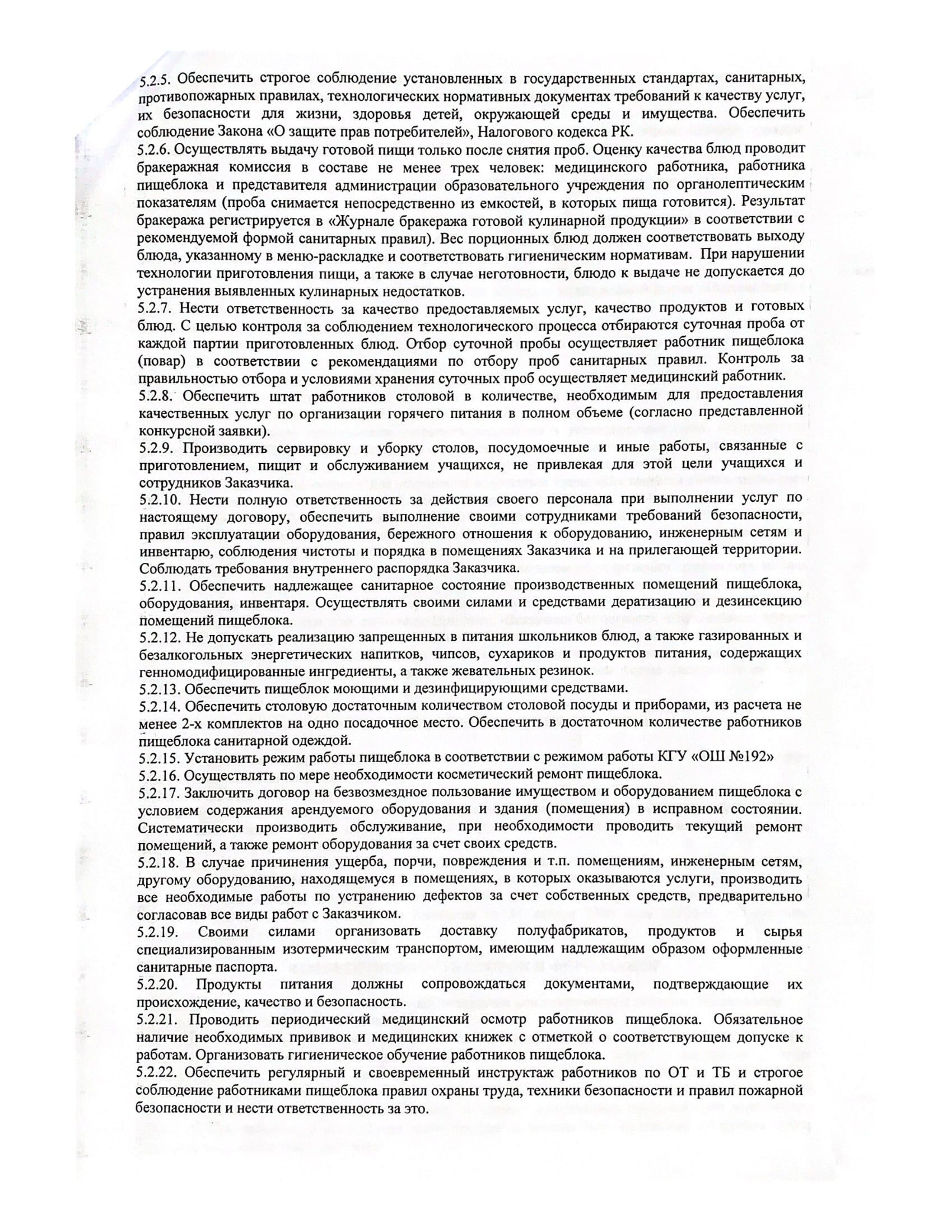 Тамақтандандыру Шарттары