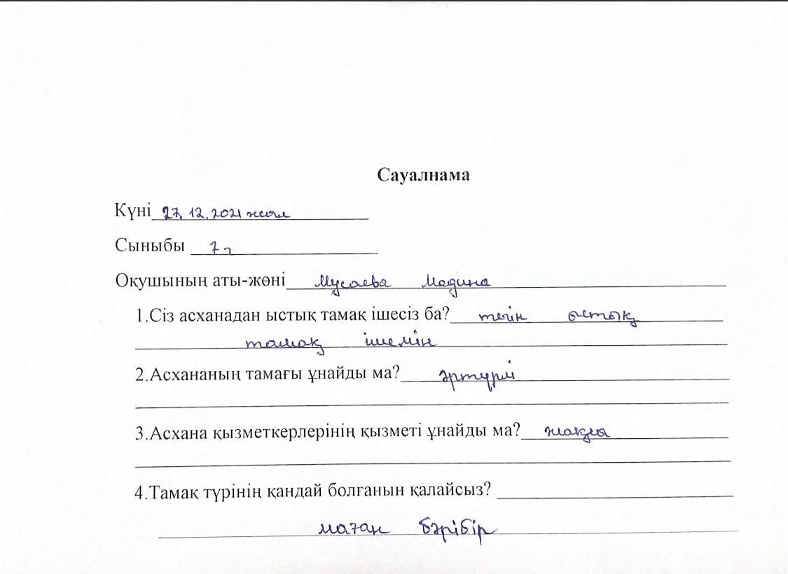 Тамақтануды ұйымдастыру бойынша жұмыс жоспары