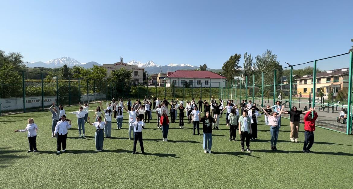 «Балалық шақ әлемі қандай ғажап!» Халықаралық балаларды қорғау күніне арналған Қазақстан халқы ассамблеясының бастамасымен өткізіліп жатқан флешмобқа мектебіміздің жас бишілері қатысып жатыр.