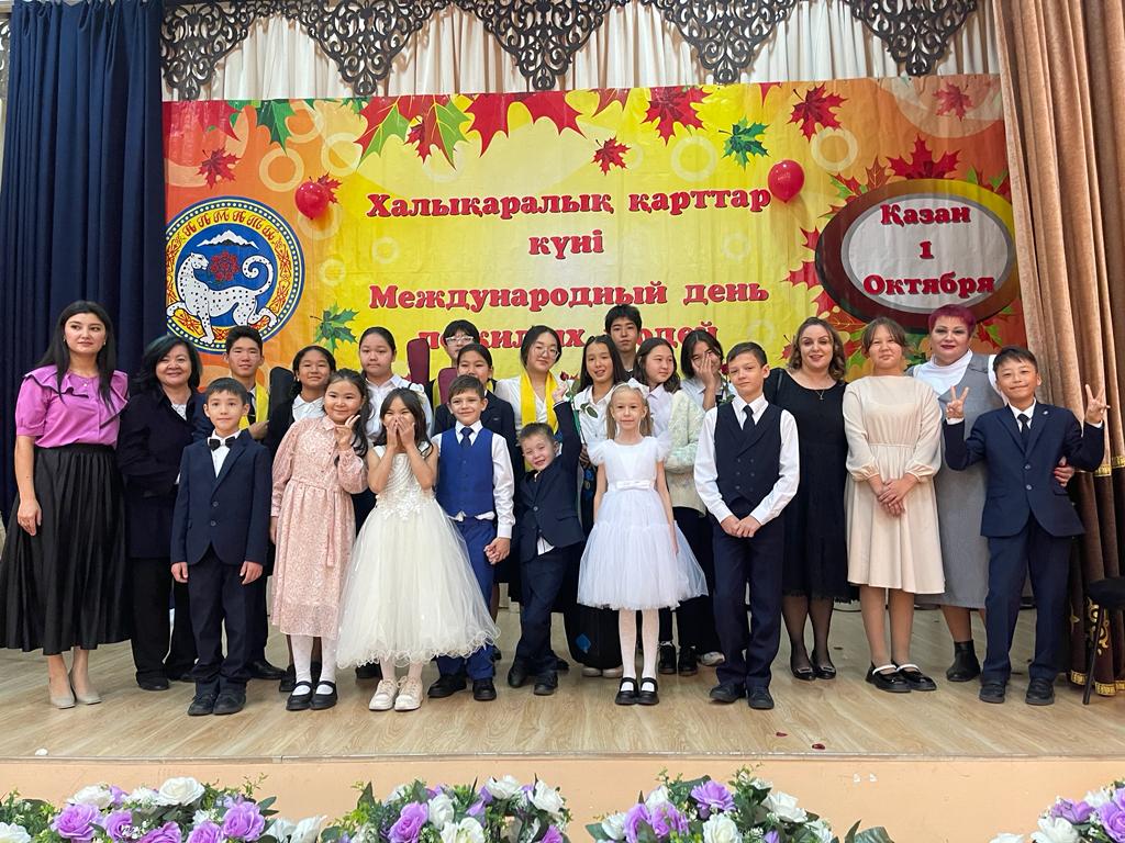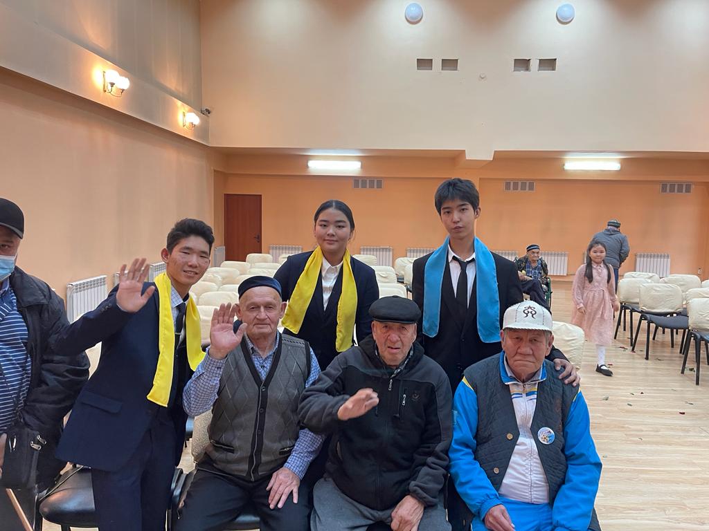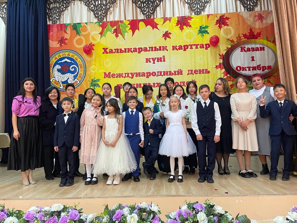 Оқушылардың бойына халқымыздың қадір-қасиетін сіңіру,үлкенді сыйлай білуге, өз ата-бабасын ұмытпай есте сақтауға және аталы сөзден ғибрат алуға тәрбиелеу мақсатында мектебіміздің “Өзін-өзі” басқару ұйым өқушылары, “Өрлеу” күйшілер ансамбльі және 1 В, 3 Г, 5 В сынып оқушыларының қатысуымен “Шаңырақ” қарттар үйіне барып 1-Қазан Харықаралық қарттар күніне орай өз өнерлерін ата-әжелерге тарту етіп, арнайы алынған сый-сыйаппаттарын табыстап, баталарын алды.
