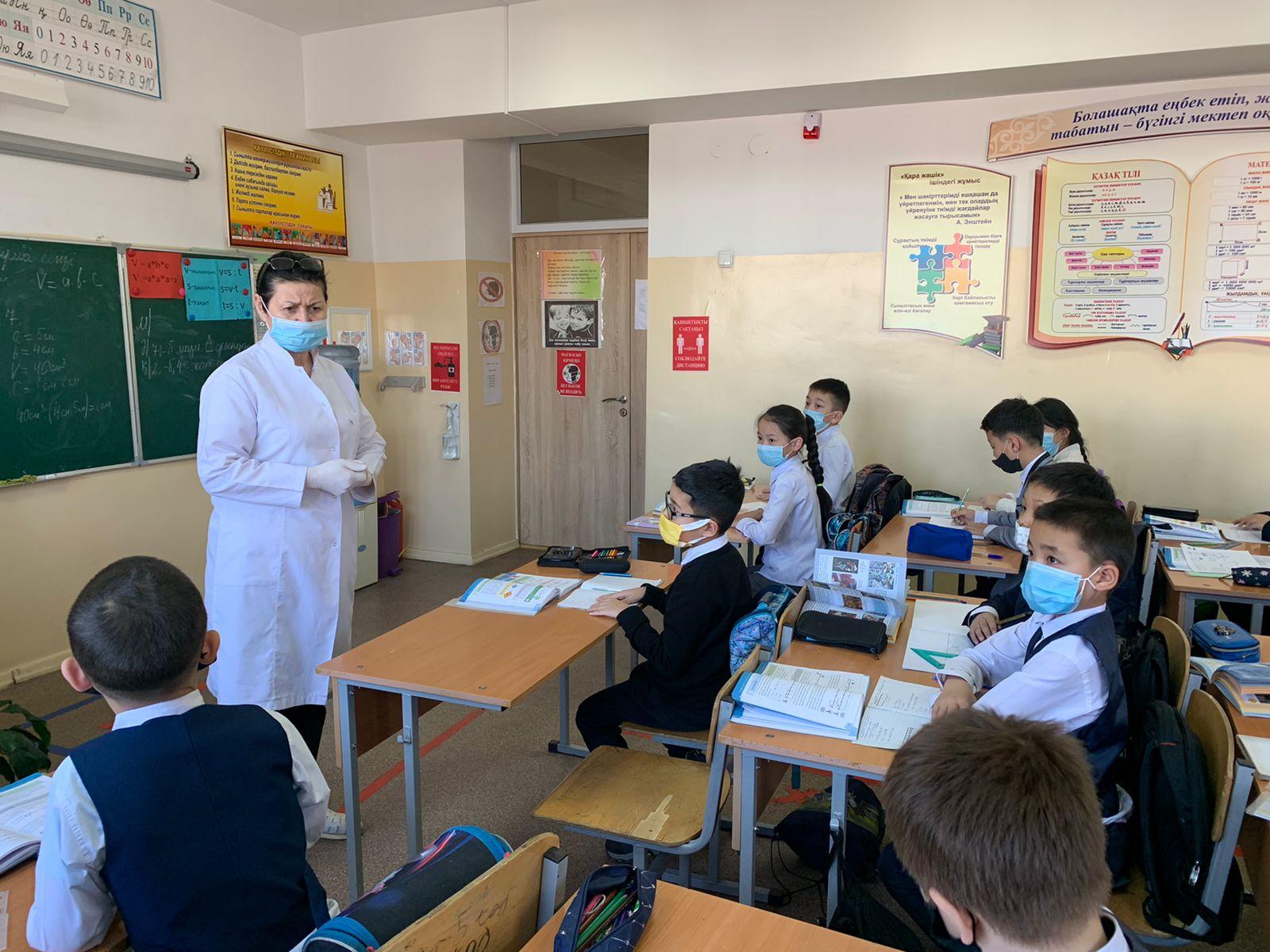 28 январь 2022 0 1 2 3 4 5 "Гигиеналық тазалық жөнінде сұхбат жұмыс" Гигиена — аурулардың алдын алуға және денсаулық сақтауды қорғайды.Мектебіміздің мейірбекесі Утешова Рыскул Бухарбаевна 4 “Б” сынып оқушыларына санитарлық гигиеналық тазалық жөнінде сұхбат жұмысын жүргізді.