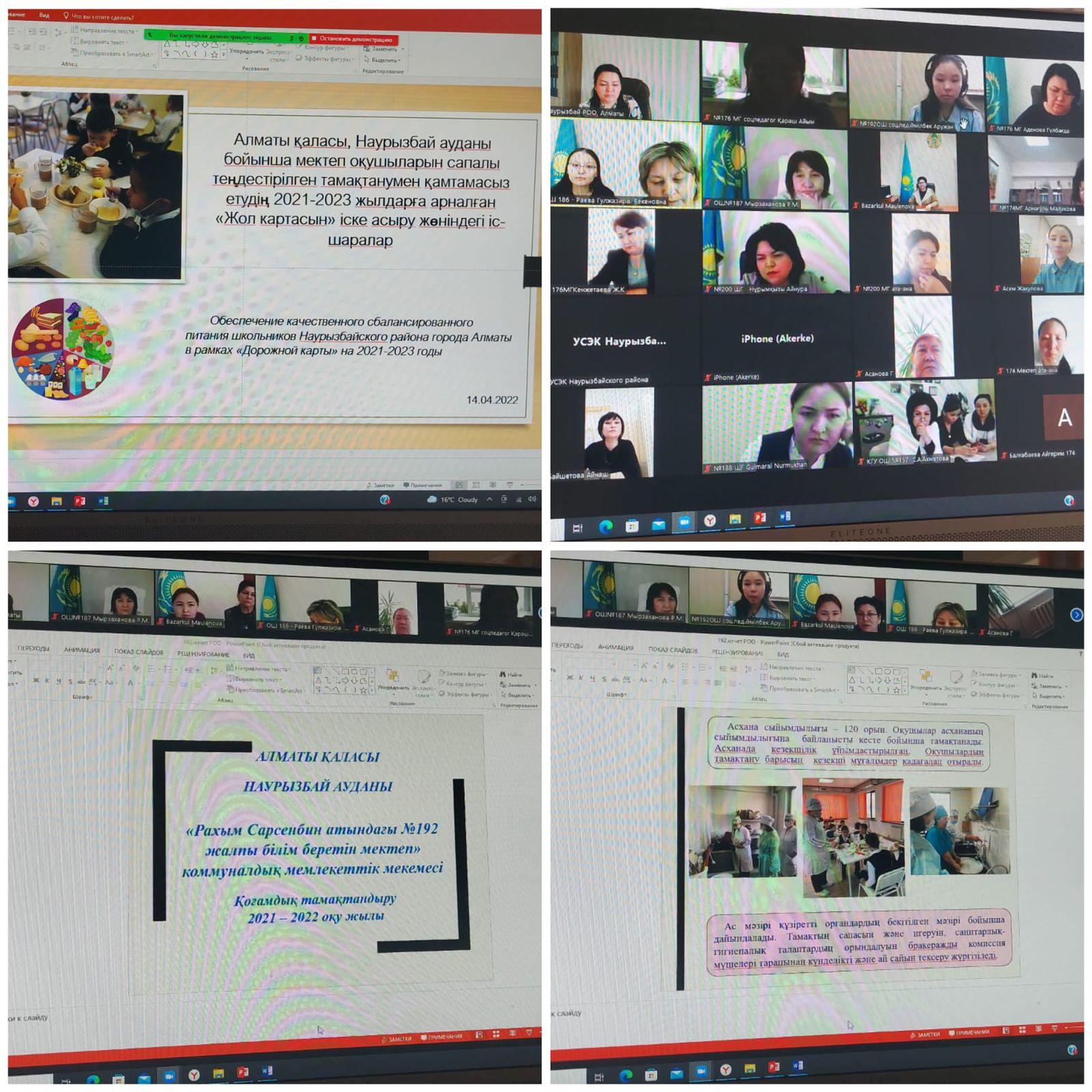 Ағымдағы жылдың 14 сәуір күні Наурызбай ауданы бойынша «Мектеп оқушыларын сапалы теңдестірілген тамақтанумен қамтамасыз етудің 2021-2023 жылдарға арналған Жол картасын іске асыру жөніндегі іс-шаралар жоспарына» сәйкес ZOOM платформасы арқылы онлайн семинар өтті.
