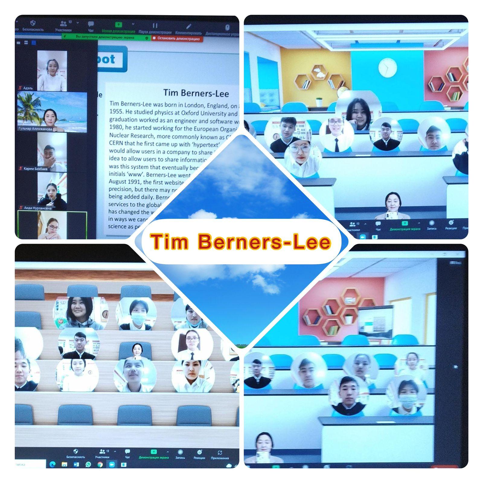 Мектебіміздің ағылшын пәнінің мұғалімі Алимжанова Гульнар Ещейовна 11 “А” сынып оқушыларына “Tim Berners Lee” атты тақырыпта ашық сабақ өткізді.