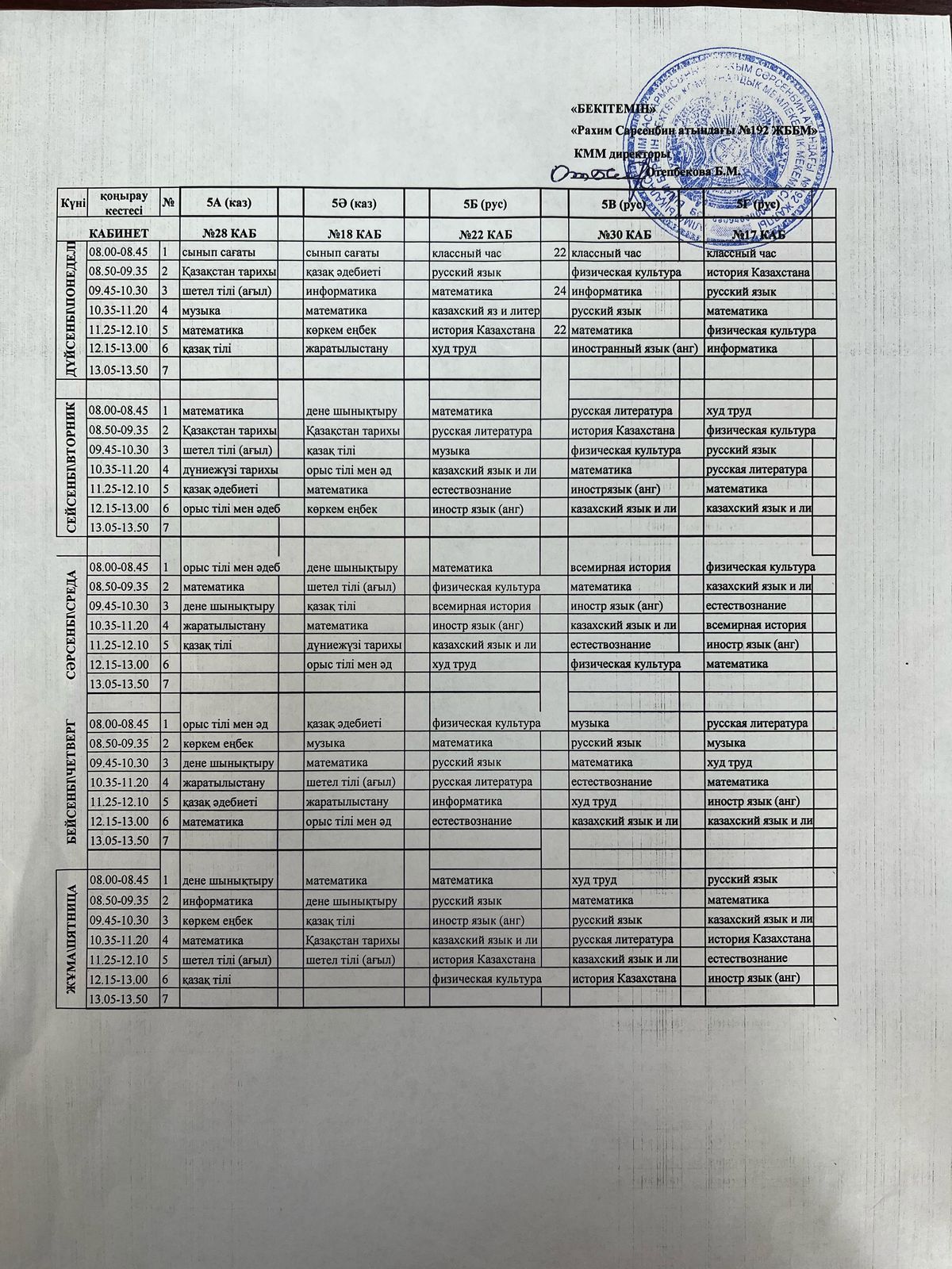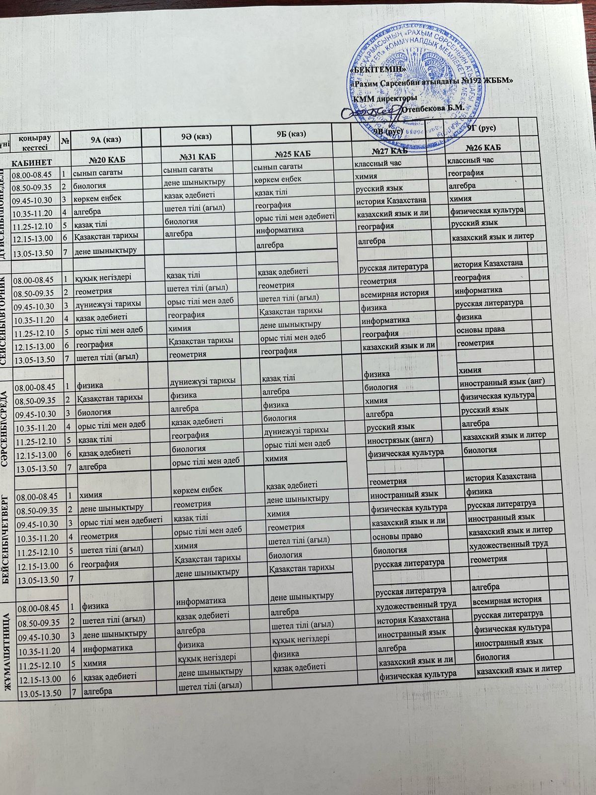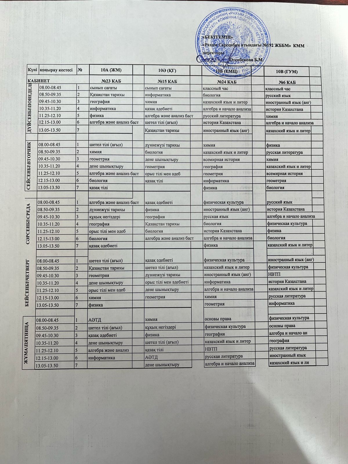 Сабақ кестесі 2024-2025 оқу жылы