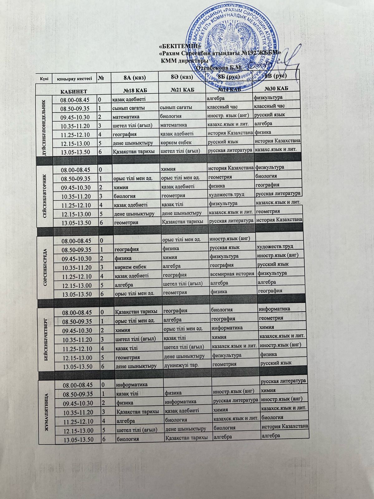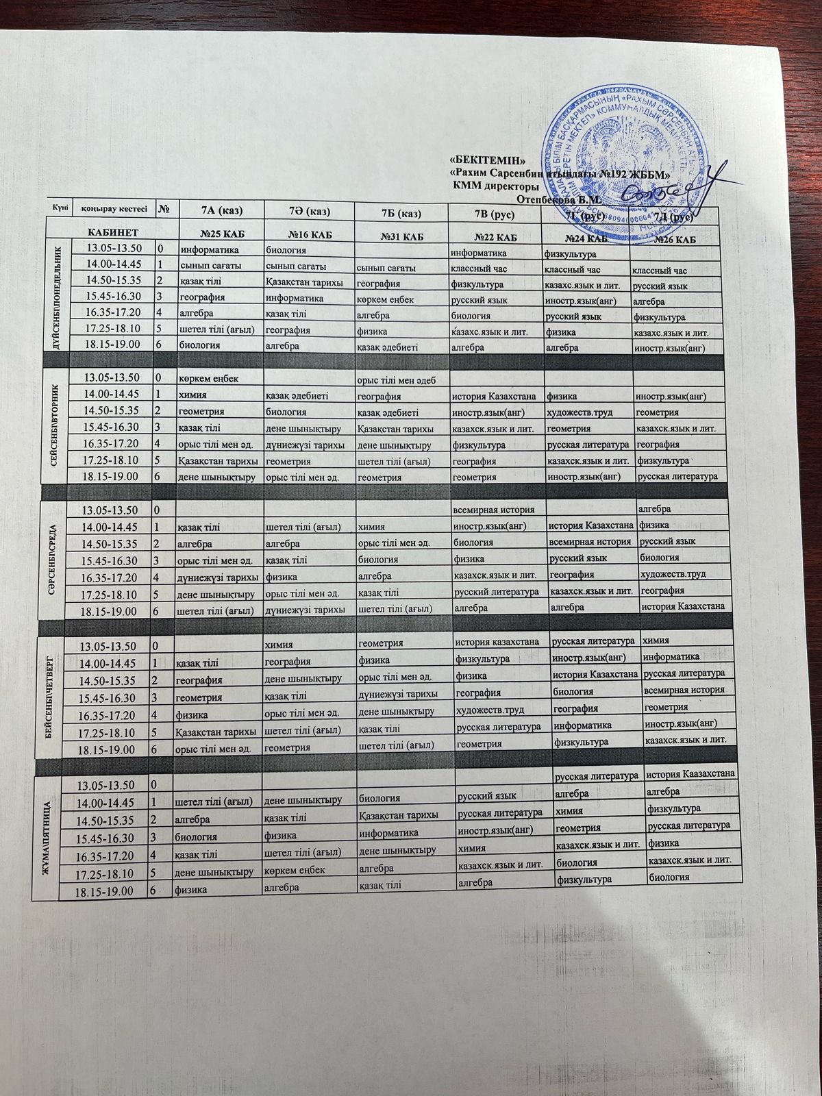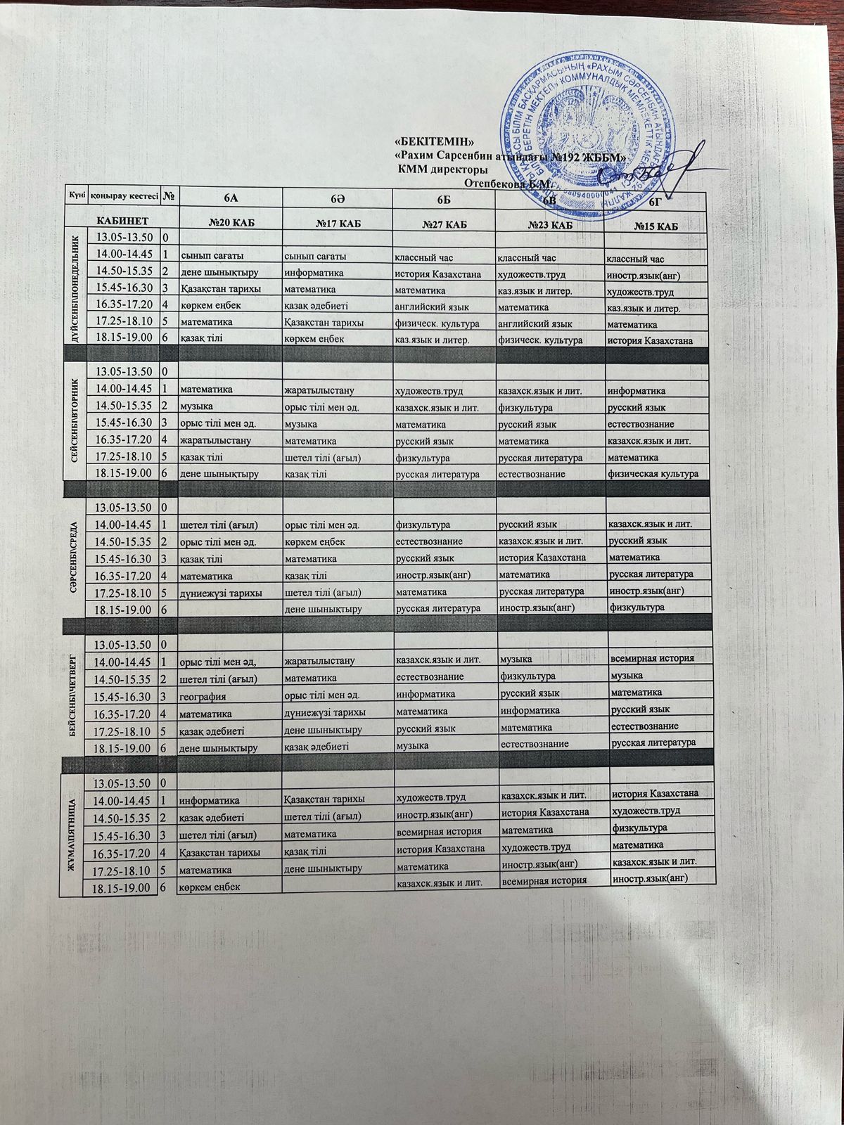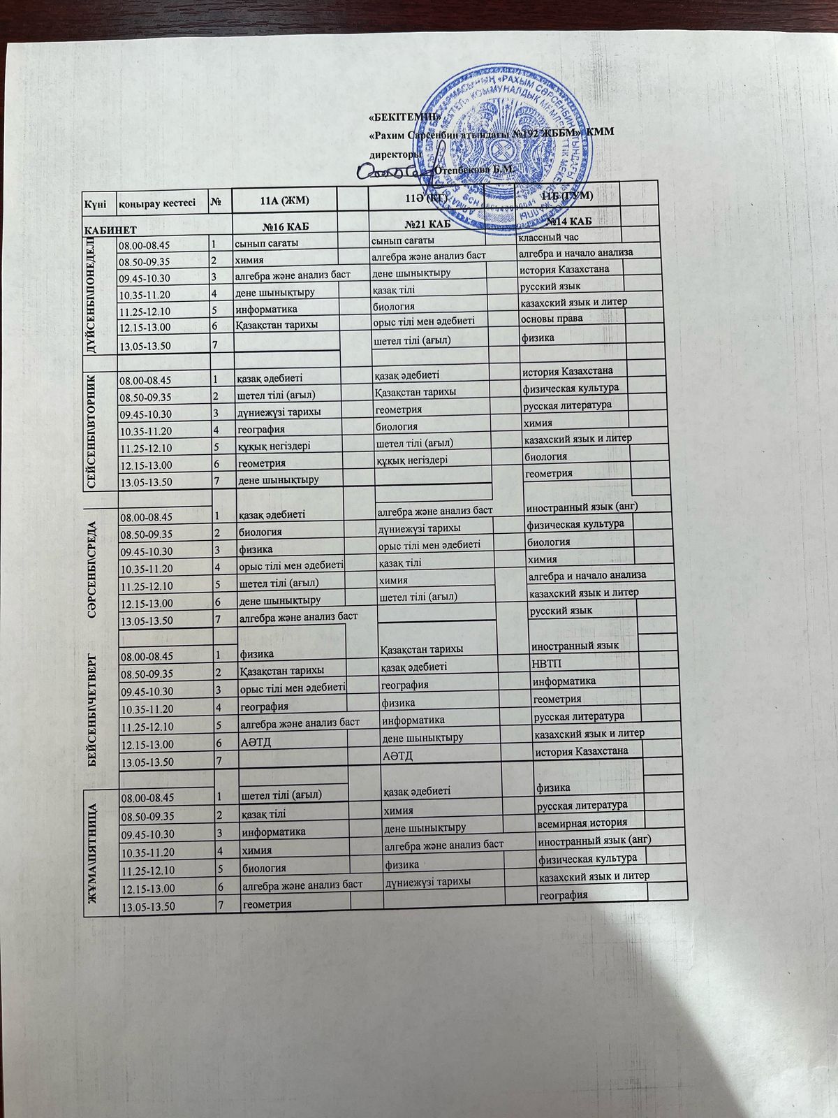 Сабақ кестесі 2024-2025 оқу жылы