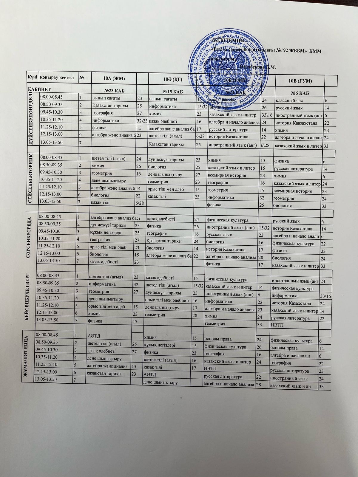 2024-2025 оқу жылындағы 5 "В" сыныбында уақытша үйден оқитын В.Воробьевтың сабақ кестесі