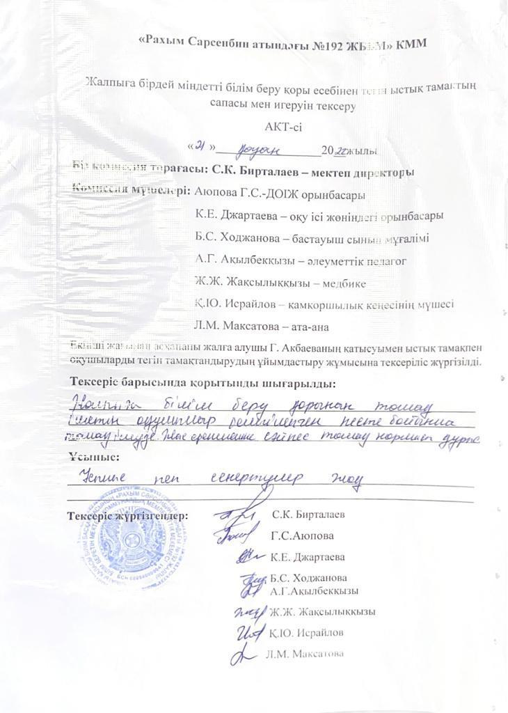 КГУ «ОШ №192 им.Рахима Сарсенбина»