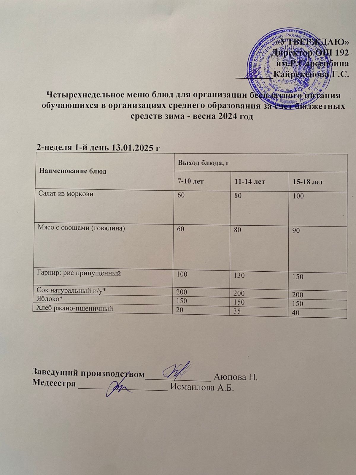 2024-2025 оқу жылында тамақтандыруды ұйымдастыру туралы